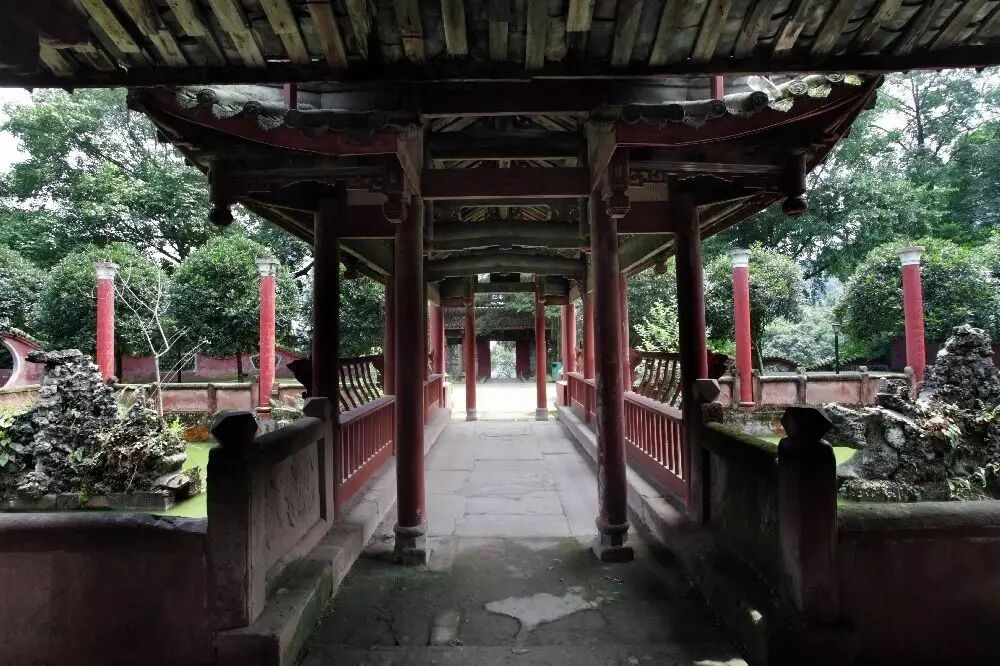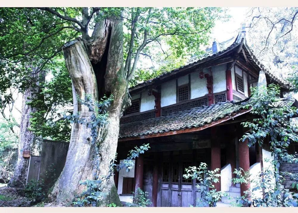 南宋爱国诗人陆游任蜀州通判时曾亲临造访,发现山中大明古刹院内有两株大楠木拔地而起,秀茂非常。诗人禁不住驻足良久,绕树而诗,为后人留下千古珍贵的墨宝——《化成院》。